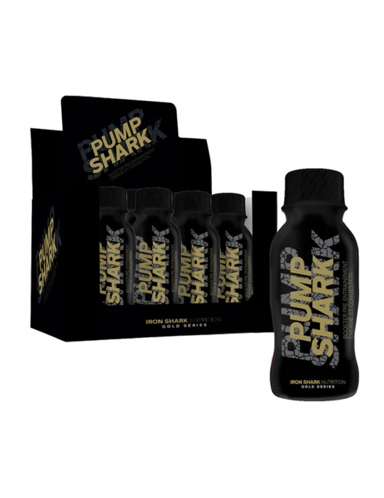 Iron SharkPump Shark (12x100ml ) son tiradores diseñados por. Especialmente formulado para retrasar la fatiga durante el entrenamiento. Con 200 mg de cafeína y 1.000 mg de taurina (por 50 ml), esta fórmula es famosa por su capacidad para prolongar el rendimiento físico.