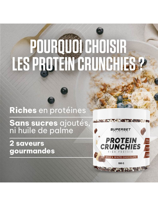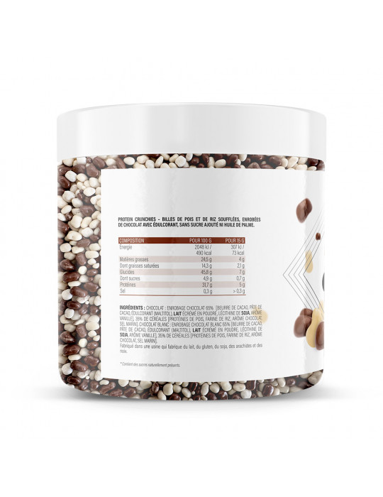 Información nutricional PROTEIN CRUNCHIES (550G) MILK CHOCOLATE & WHITE CHOCOLATE