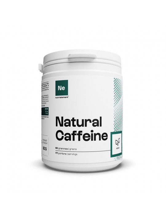 La cafeína natural (60 g), procedente de granos de café verde sin tostar (Coffea arabica) y producida por Nutrimusclees un producto altamente beneficioso.