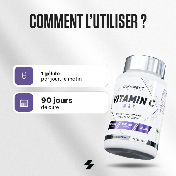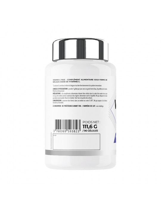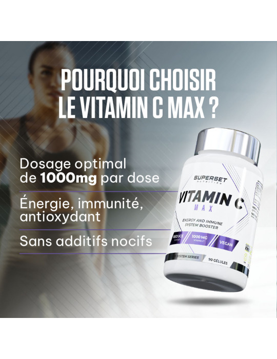 VITAMIN C MAX (90 CAPS) de Superset Nutrition le ofrece una dosis óptima de vitamina C en forma de ácido L-ascórbico puro. Cada dosis diaria contiene 1000 mg, una cantidad ideal para cubrir sus necesidades de esta vitamina esencial.