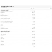 Ingredientes - Sabor guaraná: maltodextrina, monohidrato de creatina 13,6%, dextrosa, hidrocloruro de L-arginina, agente de carga (polidextrosa), beta-alanina, L-citrulina, L-tirosina, aroma, acidulante (ácido málico), citrato de sodio, sales cálcicas de ácido ortofosfórico, [extrait de graines de guarana, maltodextrine, caféine] acidulante (ácido cítrico), carbonato de magnesio, antiaglomerante (dióxido de silicio), cafeína anhidra 1,1%, acetil L-carnitina, edulcorantes (acesulfamo K, sucralosa), taurina, extracto de hoja de té verde, L-glutamina, extracto de preparado de guaraná , ácido L-ascórbico, extracto de rizoma de jengibre, hidrocloruro de L-ornitina, L-leucina, regulador de la acidez (carbonato sódico), B-hidroxi-B-metilbutirato cálcico, L-carnitina-l-tartrato Carnipure 0,2%, extracto de hoja de Ginkgo biloba, bisglicinato de zinc, nicotinamida, preparado de acetato de DL-alfa-tocoferilo, antiaglomerante (dióxido de silicio), extracto de frutos de pimienta negra Bioperine 0,007%, clorhidrato de piridoxina, D-biotina, ácido pteroil-monoglutámico, cromo-pikolinàt, cianocobalamina.
