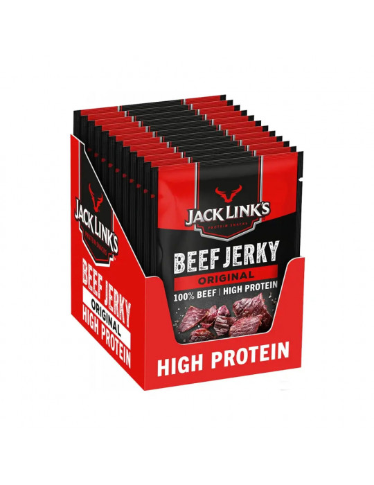 Cecina de vaca (12X60g) de Jack Link's se compone de 12 sobres individuales de 60 g cada uno de cecina de vaca.