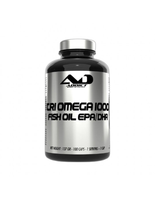Tri Omega 1000 deAddict Sport Nutrition le proporciona una dosis óptima de omega-3 de alta calidad, con 150 mg de DHA y 100 mg de EPA por ración. Estos dos ácidos grasos esenciales desempeñan un papel clave en el mantenimiento del funcionamiento normal del corazón, al tiempo que favorecen el rendimiento y la recuperación muscular gracias a sus potentes propiedades antiinflamatorias.