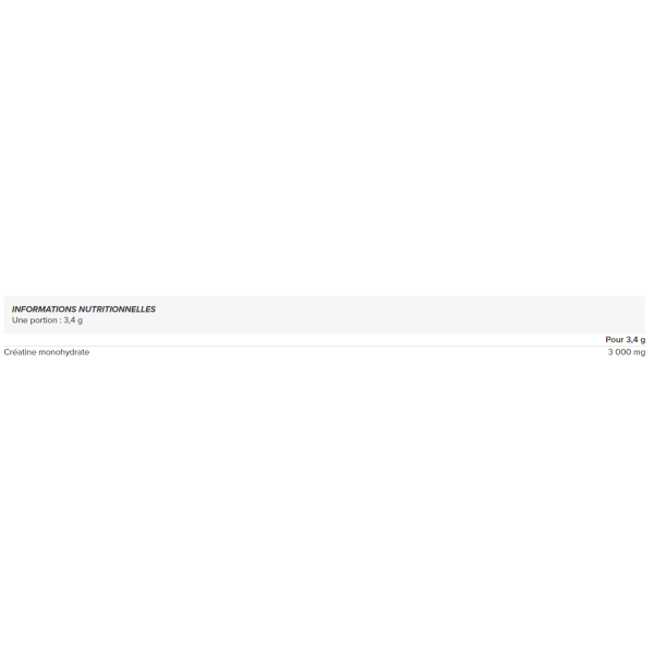 Esta creatina en polvo es uno de los suplementos más populares en el mundo del culturismo. Cada dosis contiene 3g de monohidrato de creatina, y una ingesta diaria de 3g contribuye a mejorar el rendimiento físico durante series sucesivas de ejercicios muy intensos y de corta duración.