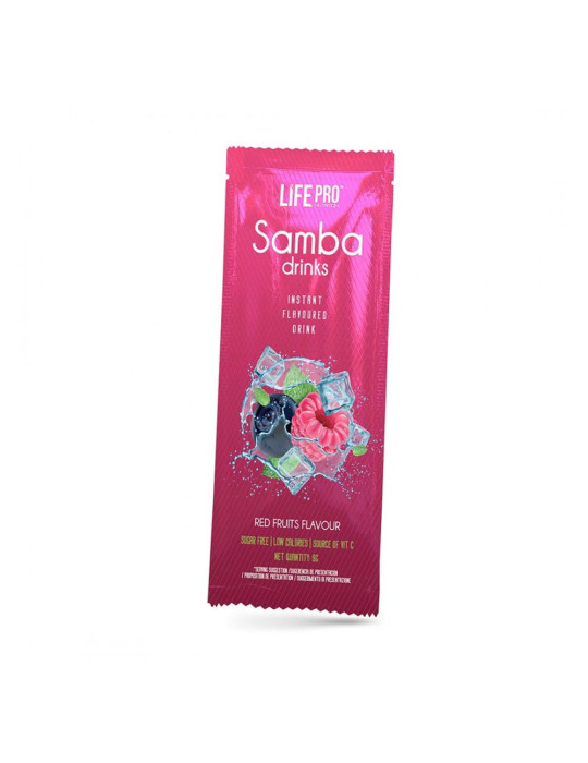 Life Pro Samba Drinks es una bebida instantánea en polvo que hace que la hidratación sea sabrosa y divertida, a la vez que ultraligera.