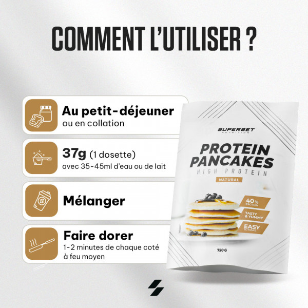 - Por último, los suaves y sabrosos PANQUEQUES DE PROTEÍNA (750 g) son el toque gourmet que le permitirá saborear cada bocado al tiempo que se beneficia de un aporte proteínico esencial.