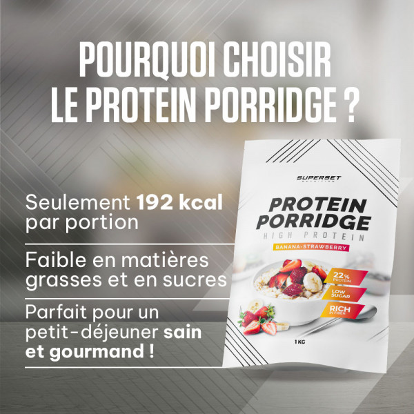 - Además, PROTEIN PORRIDGE (1KG), rico en proteínas, proporciona un desayuno equilibrado para empezar bien el día.