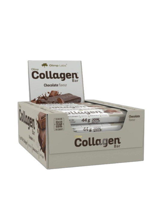 Collagen Bar (25x44g) deOlimp Sport Nutrition es una barrita de proteínas especialmente diseñada para favorecer la salud de las articulaciones, la piel y el tejido conjuntivo gracias a su fórmula rica en colágeno.