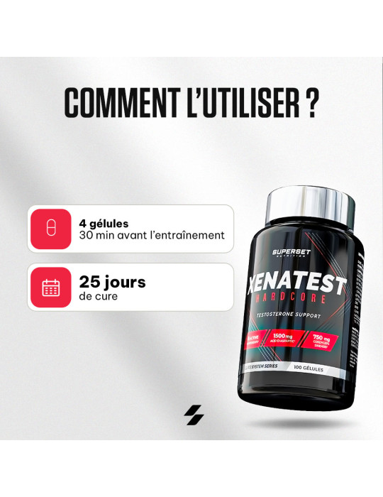 XENATEST HARDCORE (2x100 CAPS) es un potente complemento alimenticio natural sin hormonas diseñado por los expertos de Superset Nutrition. Gracias a su curso óptimo de 50 días, esta fórmula avanzada de alta calidad estimula la producción de testosterona y ayuda a mantener su masa muscular.