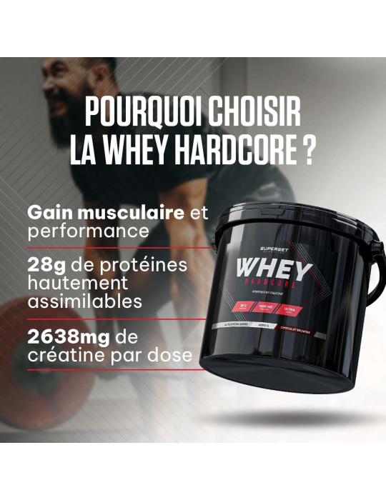 Ingredientes Sabor Brownie de chocolate : concentrado de proteína de suero (leche) {concentrado de proteínas de trigo (leche), emulgente [lecitinas (soja)]} 77%, monohidrato de creatina micronizado 8,3%, cacao en polvo desgrasado 5,9%, taurina 2,8%, aromas (contiene cafeína), copos de chocolate [saccharose, pâte de cacao, poudre de cacao dégraissée, émulsifiant (lécithines), beurre de cacao, lait entier en poudre] 2%, espesante (goma xantana), sal, edulcorantes (sucralosa, acesulfamo k), sulfato de zinc, aislado de proteína de suero (leche) instantáneo {aislado de proteína de suero (leche), emulgente [lecitinas (soja)]} 0,083%, bromelina de piña (1200 gdu/g) 0,033%, papaína de papaya (1,5 fip u/mg) 0,033%, vitamina d (colecalciferol), colorante (caramelo de sulfito cáustico).