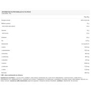 Ingredientes : L-Leucina 17,6%, Acidificante Ácido cítrico, L-Clorhidrato de lisina 13,4%, L-Isoleucina 8,8%, L-Valina 8,8%, L-Fenilalanina 7,1%, L-Metionina 6,4%, L-Treonina 6,4%, Maltodextrina, Aroma, Colorante Caramelo Amoniacal, L-Triptófano 1,7%, Edulcorantes Acesulfamo K, Sucralosa, Agente de Liberación Dióxido de Silicio, Aceite Vegetal Coco, Palma, Emulgente Lecitinas*, Vitamina B6. *aceite de girasol