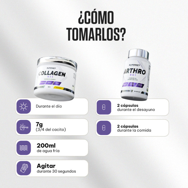 Este pack combina dos productos esenciales para favorecer la salud articular, mejorar la flexibilidad y fortalecer los cartílagos. Ideal para deportistas o para quienes buscan una mayor comodidad en su vida diaria, ofrece una solución completa para unas articulaciones fuertes y una movilidad optimizada.