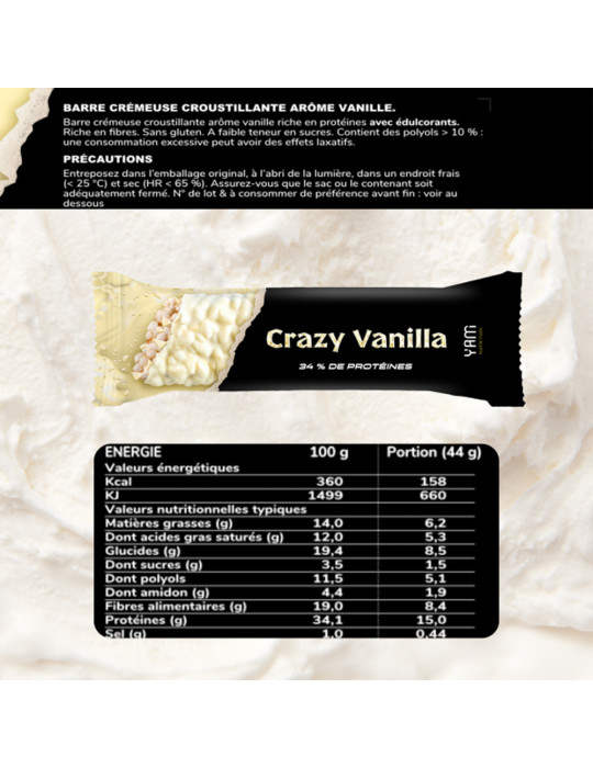 Crazy Protein Bar (44g) de Yam Nutrition crazy Protein Bar es mucho más que un simple tentempié: es una forma sabrosa y práctica de aumentar fácilmente tu ingesta de proteínas, tanto si eres deportista como si realizas actividad física a diario o simplemente cuidas tu dieta.