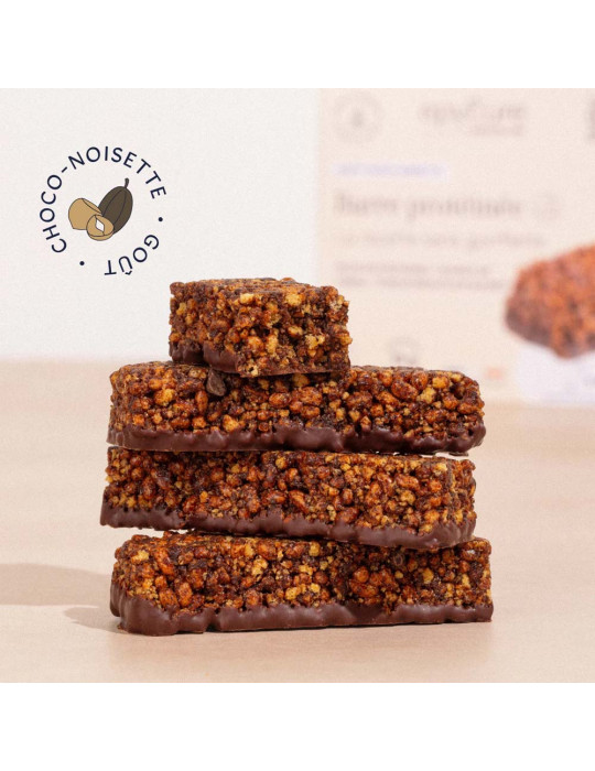 Cuando se trata de placer, esta barrita no decepciona: su textura crujiente y su sabor a chocolate y avellanas la convierten en un auténtico tentempié libre de culpa. Puede consumirla antes o después del entrenamiento, o simplemente si tiene hambre durante el día.