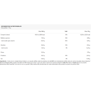 Ingredientes: crema de arroz integral (Oryza Sativa L.) en polvo (28%), aislado de proteína de leche (MPI) no instantáneo (24%), harina blanca de raíz de batata* (Ipomoea Batatas) (11%), trozos de chocolate negro 61%* (pasta de cacao*, azúcar de caña*, manteca de cacao*) (contiene leche) (11%), clara dehuevo de corral pasteurizada en polvo (9%), aceite de coco MCT en polvo* (8%), inulina (4%), bicarbonato sódico (3%), puré de manzana en polvo (2%).