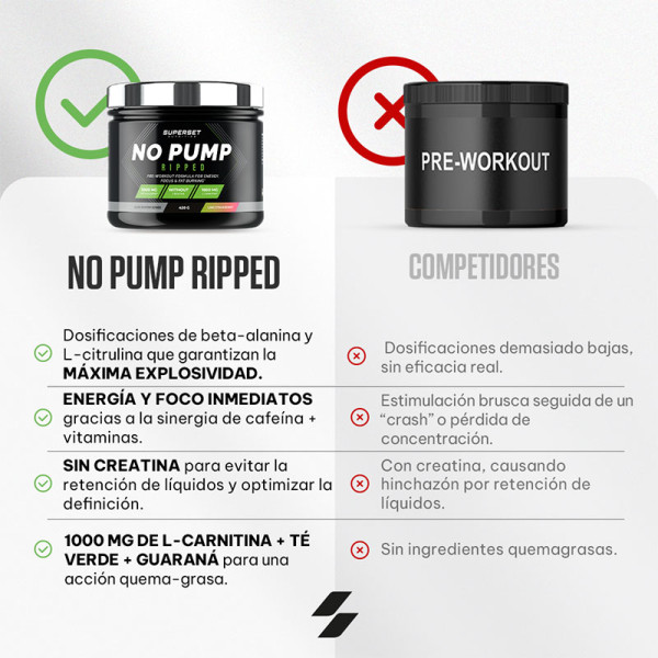 Ponte al límite cada vez que entrenes con No Pump Ripped (420g), un pre-entreno de triple acción desarrollado por la marca francesa Superset Nutrition, que combina energía explosiva, congestión extrema y quema de grasa intensiva.