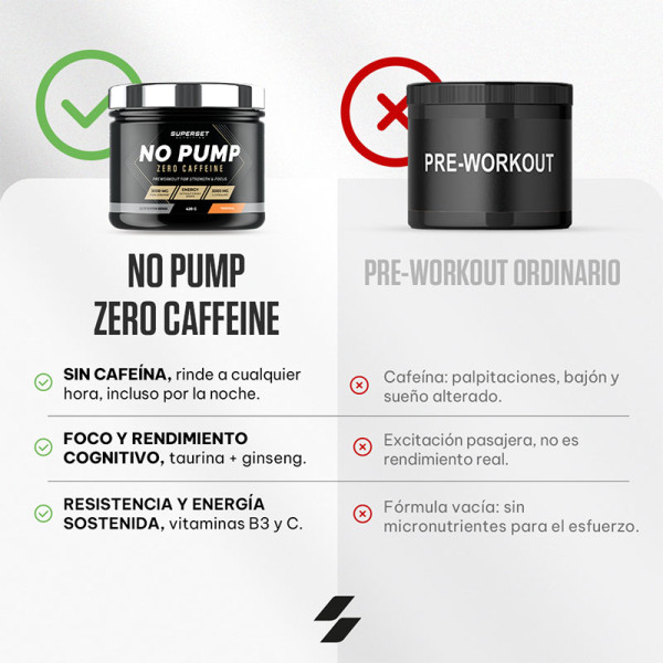 Diseñado por los especialistas en nutrición de la marca francesa Superset Nutrition para obtener los máximos resultados durante sus sesiones de entrenamiento, No Pump Zero Caffeine (420g) le ayudará a seguir rindiendo sin las conocidas limitaciones de la cafeína.
