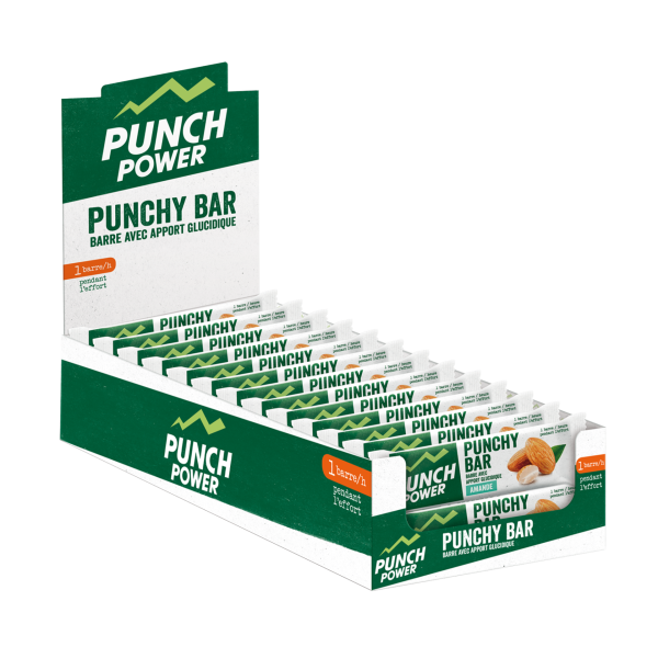 La caja de barritas Punchy (40x30g) de Punch Power es ideal si quieres tener siempre a mano una práctica fuente de energía durante tus entrenamientos o competiciones. Tiene todos los beneficios de la barrita individual, en un formato diseñado para los atletas de resistencia que quieren anticipar sus necesidades de avituallamiento y tener una solución sencilla para llevar consigo. La ficha del producto describe Punchybar como un tentempié energético especialmente indicado para maratones y deportes de resistencia.
