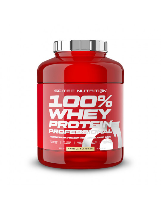 Scitec Nutrition100% Whey Protein Professional de es una mezcla de proteínas de alta calidad a base de aislado de suero y concentrado de suero. Las proteínas alimentarias aportan nitrógeno y aminoácidos esenciales, que el organismo necesita para el crecimiento y la conservación de los tejidos.