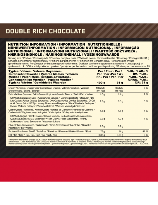 Gracias a su composición, la proteína Whey Gold Standard es de óptima calidad y actuará eficazmente para ayudar al desarrollo muscular. Contiene sólo 1,3 g de hidratos de carbono y 1,4 g de grasa por porción, lo que es muy bajo y ayuda a controlar al máximo la ingesta de azúcares, especialmente durante los periodos de desarrollo muscular magro.