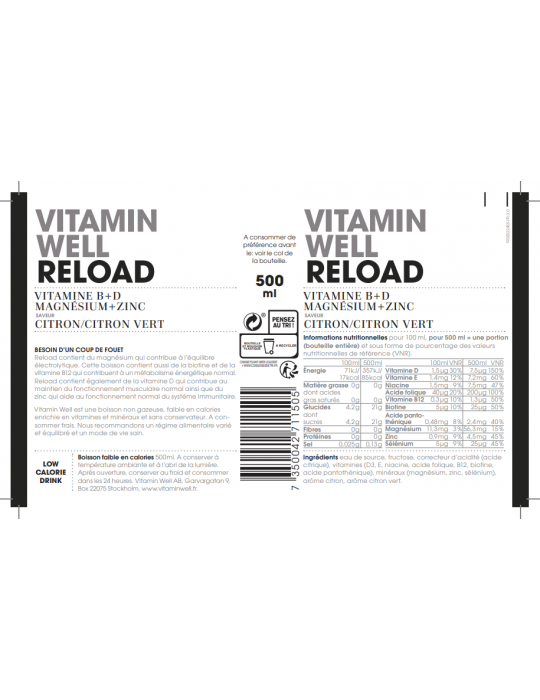 Vitamin WellQui potete scoprire 4 bevande con principi attivi, effetti e sapori diversi. VITAMIN WELL RELOAD è una formula ricca di vitamine, che contiene le vitamine B e D e minerali essenziali come il magnesio e il ferro. Vitamin Well La versione RELOAD di VITAMIN WELL è disponibile al gusto di limone giallo/limone, un sapore fresco e acidulo con la giusta dolcezza.