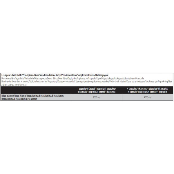 La formula di Beta Alanina di BioTech USA fornisce 1000 mg di beta alanina pura per capsula, ovvero 4000 mg per dose!