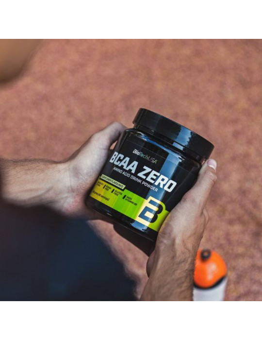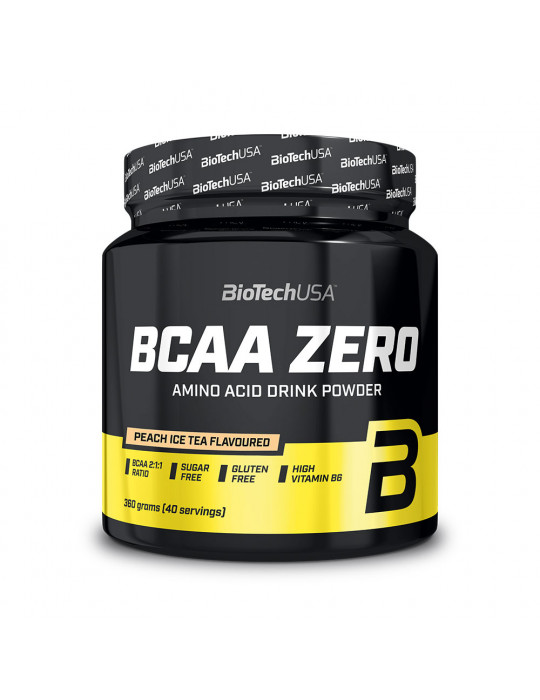 BioTech BCAA Zero (360 g) è una polvere di BCAA aromatizzata con un rapporto 2:1:1 di leucina, isoleucina e valina, ovvero 6 g di BCAA per dose.
