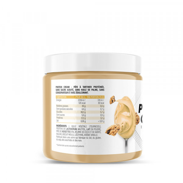 Ingredienti Biscotti :Olio vegetale (girasole), proteine da LATTOSERIO, maltitolo, LATTE polvere, pasta di NOISETTE 10%, burro di cocco e di karité, inulina, biscotto macinato, lecitina, aroma di vaniglia.