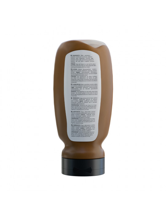 Ingredienti Caramello : acqua, edulcoranti (eritritolo, maltitolo e sucralosio), stabilizzante (gomma di xanthan), aromi (contiene segale), acidificante (acido lattico), conservante (sorbato di potassio), sale e colorante (caramello ammoniacale solfitato).