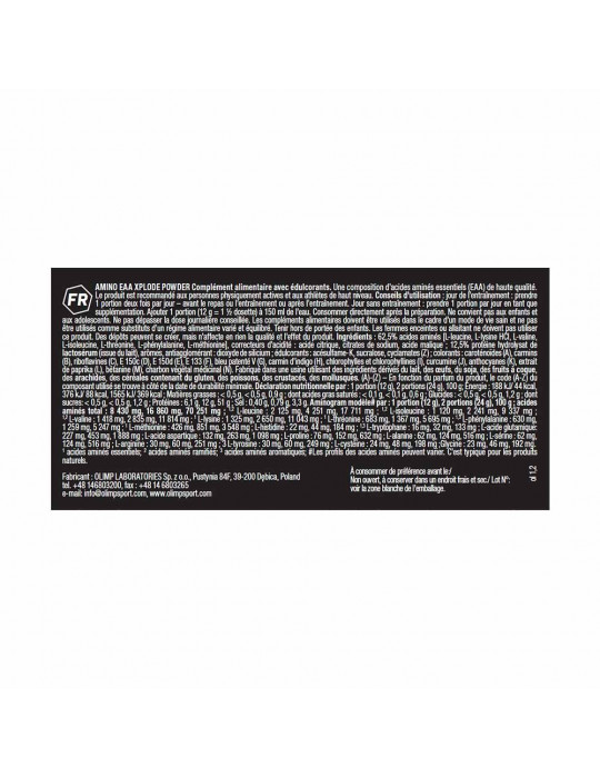 Olimp Sport Nutrition amino EAA ha deciso di lanciare la sua formula in polvere, composta da una matrice di EAA dosata a 6.360 mg, da un'aggiunta di 2010 mg di aminoacidi semi-essenziali e non essenziali e da 1.000 mg di BCAA (leucina, valina, isoleucina).