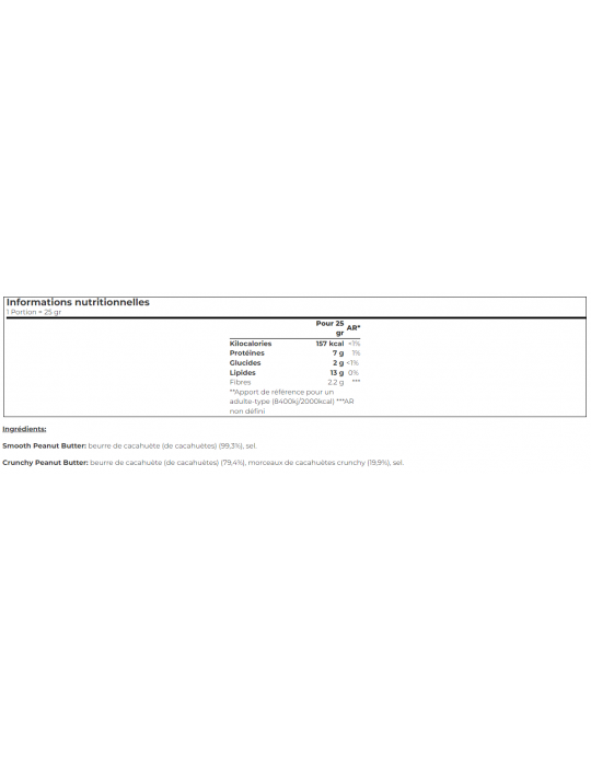 Burro di arachidi croccante: burro di arachidi(arachidi) (79,4%), pezzi di arachidi croccanti (19,9%), sale.