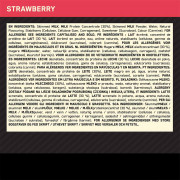 Ingredienti Fragola : latte scremato (80%), acqua, concentrato di proteine del latte (5,8%), aroma, stabilizzanti (gomma di gellano, carragenina), correttore di acidità (citrato trisodico), colorante (licopene), edulcorante (sucralosio).