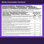 [LAIT]INGREDIENTI: Cioccolato alle proteine del latte (20%) (concentrato proteico di LATTOSIO, burro di cacao, latte intero in polvere, edulcorante: maltitolo; pasta di cacao, aroma naturale di vaniglia), scaglie di proteine isolate di SOIA (13%), copertura al gusto di caramello (13%) (umidificante: glicerolo; maltodestrina, fruttoligosaccaridi, edulcorante: maltitolo; olio di cocco, LATTE scremato in polvere, colore: E150a; emulsionante: [LAIT][LAIT] lecitina di SOYA; sale, aromi naturali), frutto-oligosaccaridi, uva sultanina (8%), ARACHIDI tostate (7%), patatine proteiche (7%) (isolato proteico di SOYA, amido, sale), polidestrosio, isolato proteico di LACTOSERUM, isomalto-oligosaccaridi, umettante (glicerolo), olio di colza, aromi .