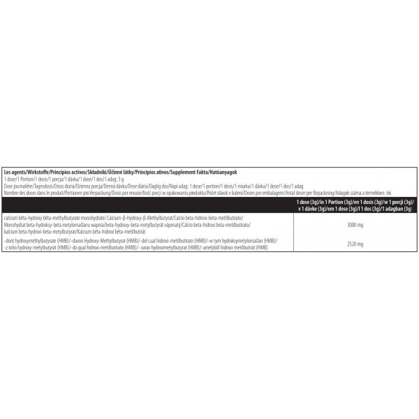 Ingredienti: calcio β-idrossi-β-metilbutirrato monoidrato (100%).