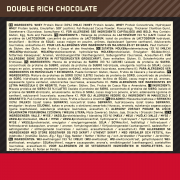 Ingredienti al gusto di cioccolato: miscela di proteine del siero di latte (93%)[latte] (proteine del siero di latte isolate, proteine del siero di latte concentrate, proteine del siero di latte isolate idrolizzate, emulsionante: lecitina di soia), cacao magro in polvere, aromi, addensante (gomma di xanthan), edulcoranti (sucralosio, acesulfame K).