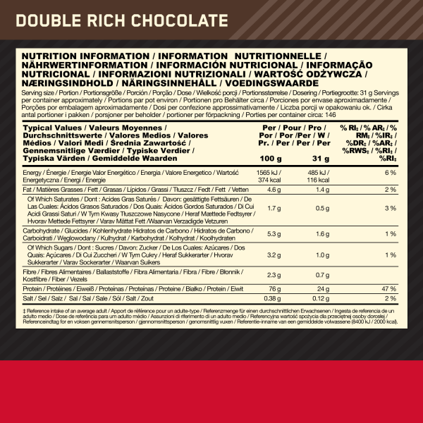 Ora disponibile in un formato da 4,54 kg, Whey Gold Standard è una delle proteine in polvere più vendute al mondo.