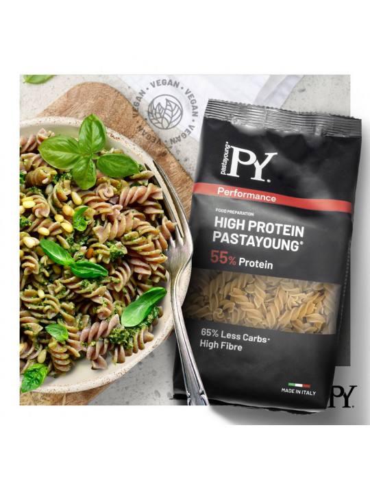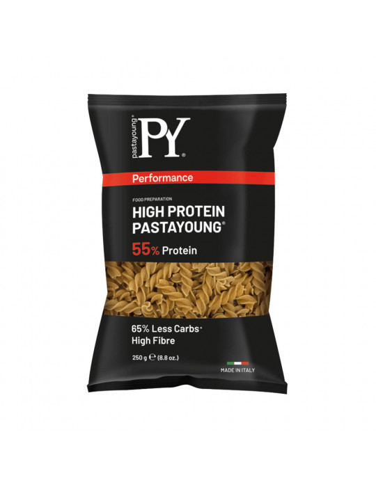 IFusilli ad alto contenuto proteico (250 g) sono una pasta proteica a basso contenuto di carboidrati prodotta in Italia.