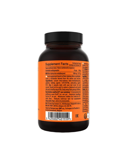 QNT L'HMB (beta-idrossi beta-metilbutirrato) è un metabolita dell'aminoacido leucina, che aiuta a ridurre la disgregazione delle proteine durante l'esercizio fisico intenso e contribuisce all'aumento della massa muscolare.