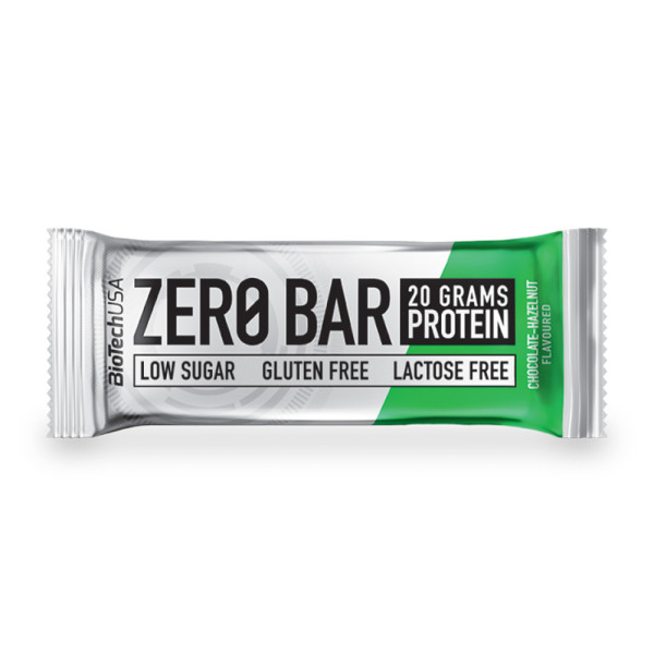 Biotech USALa barretta Zero (50 g) è una barretta di cioccolato indulgente con un alto contenuto proteico derivato dalle proteine isolate del siero di latte e dall'albume d'uovo.