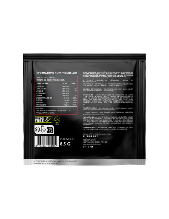 Superset Nutrition ha aggiunto alla sua formula di BCAA la L-citrullina, un aminoacido coinvolto nella sintesi dell'arginina e anche nella sintesi dell'ossido nitrico, responsabile della vasodilatazione e della supercongestione.