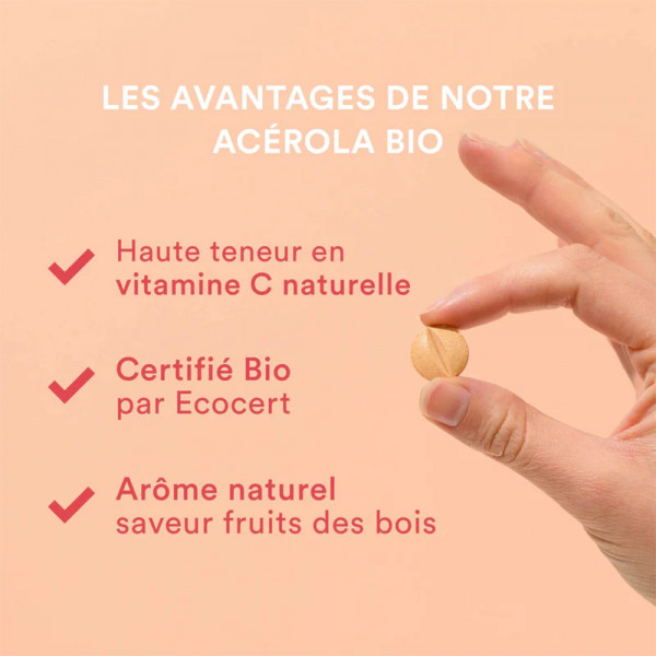 L'acerola è un piccolo frutto rosso aspro naturalmente ricco di vitamina C. 1 compressa di Acerola biologica (60 caps) contiene 1000 mg di acerola, di cui 170 mg di vitamina C.