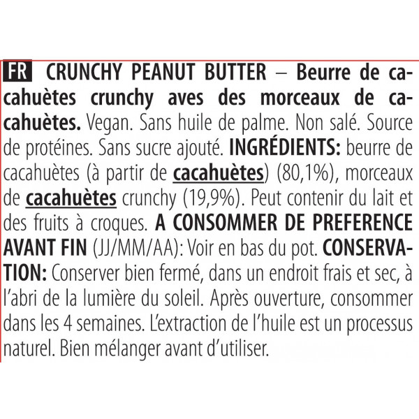 Croccante : burro di arachidi (80,1%), pezzi di arachidi croccanti (19,9%).