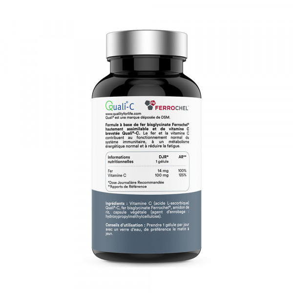 Ingredienti: Vitamina C (acido L-ascorbico) Quali®-C, ferrochel® bisglicinato, amido di riso, capsula vegetale (agente di rivestimento: idrossipropilmetilcellulosa).