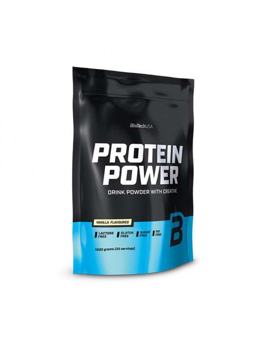 Protein Power (1 kg) del marchio Biotech USA è una polvere proteica con edulcorante arricchita con creatina.