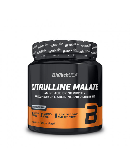 Citrullina malato (300g) del marchio Biotech USA è un integratore alimentare a base di citrullina malato in polvere con edulcorante, pura al 100%.