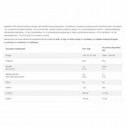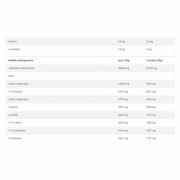 Ingredienti: 99% proteine isolate di soia, 0,46% lecitina di soia, edulcoranti - acesulfame K, sucralosio, ciclamati; 0,03% vitamine (acido L-ascorbico - Vit. C, DL-alfa-tocoferolo acetato - Vit. E, nicotinamide - niacina, D-biotina, retinile acetato - Vit. A, D-pantotenato di calcio - acido pantotenico, cloridrato di piridossina - Vit. B6, colecalciferolo - Vit. D, acido pteroilmonoglutammico - folato, tiamina mononitrato - Vit. B1, riboflavina - Vit. B2, cianocobalamina - Vit. B12), 0,03% di L-carnitina-L-tartrato.