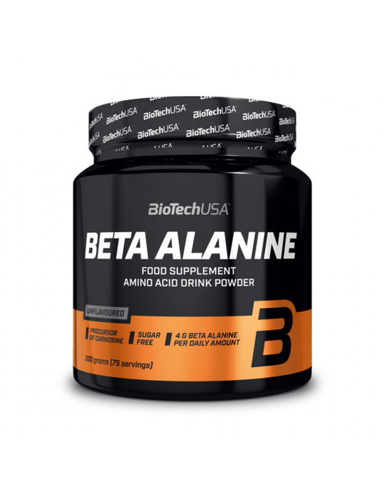 Beta-alanina (300 g) di Biotech USA è una formula in polvere a base di beta-alanina prodotta per stimolare la produzione di carnosina.