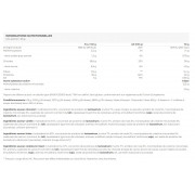 Ingredienti gusto vaniglia: maltodestrina 54%, proteine del siero di latte concentrate, inulina 7%, amido di mais 5%, creatina monoidrato micronizzata 5%, caseinato di calcio (contiene latte), addensante (gomma di cellulosa), aromi, emulsionante: lecitine (soia), proteine del siero di latte isolate, sale, edulcorante (sucralosio), colorante (tartrazina)¹.