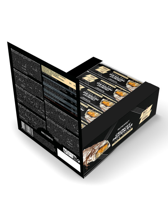 Ingredienti Choco Brownie Caramel : cioccolato al latte intero con edulcorante (edulcorante (maltitolo), burro di cacao, latte intero in polvere, pasta di cacao, emulsionante (lecitina), aroma naturale di vaniglia bourbon) 26,7%, proteine del latte (isolato di siero, caseinato di calcio), ripieno al caramello (agente di carica (polidestrosio), edulcorante (maltitolo), grasso vegetale non idrogenato (olio di cocco, burro di karité), burro di cacao, colorante alimentare (concentrato di mela e ibisco), emulsionante (lecitina), sale, aroma naturale) 12,5%, umettante (glicerolo), proteine del latte (proteine del latte, idrolizzato di proteine del latte), crispies di proteine di soia (isolato di proteine di soia, cacao in polvere, amido di tapioca) 8,33%, idrolizzato di collagene (bovino), acqua, cioccolato fondente con edulcorante (pasta di cacao, edulcorante (maltitolo), burro di cacao, emulsionante (lecitina), aroma naturale di vaniglia bourbon) 2,50%, cacao magro in polvere, aroma, cellulosa microcristallina, sale.