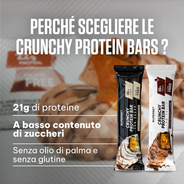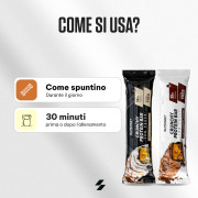 Ingredienti Vanilla Choco Caramel : cioccolato bianco con edulcorante (edulcorante (maltitolo), burro di cacao, latte intero in polvere, emulsionante (lecitina), aroma di vanillina) 26,7%, copertura al gusto di caramello con edulcorante (agente di carica (polidestrosio), edulcorante (maltitolo), grassi vegetali non idrogenati (olio di cocco, burro di karité), burro di cacao, colorante alimentare (concentrato di mela e ibisco), emulsionante (lecitina), sale, aroma naturale) 12,5%, proteine del latte (proteine del latte, idrolizzato di proteine del latte), umettante (glicerolo), proteine del latte (isolato di proteine del siero di latte, caseinato di calcio), crispies di proteine della soia (isolato di proteine della soia, cacao in polvere, amido di tapioca) 8,33%, idrolizzato di collagene (bovino), acqua, proteine del latte (caseinato di calcio), cioccolato fondente con edulcorante (pasta di cacao, edulcorante (maltitolo), burro di cacao, emulsionante (lecitina), aroma naturale di vaniglia Bourbon) 2,50%, aroma, sale, cellulosa microcristallina.